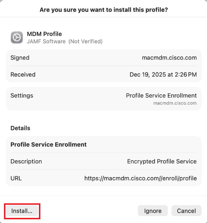 Your system is not in ABM for Cisco, so you will need to manually enroll it with Cisco Device Management. These instructions were created using Sequoia.