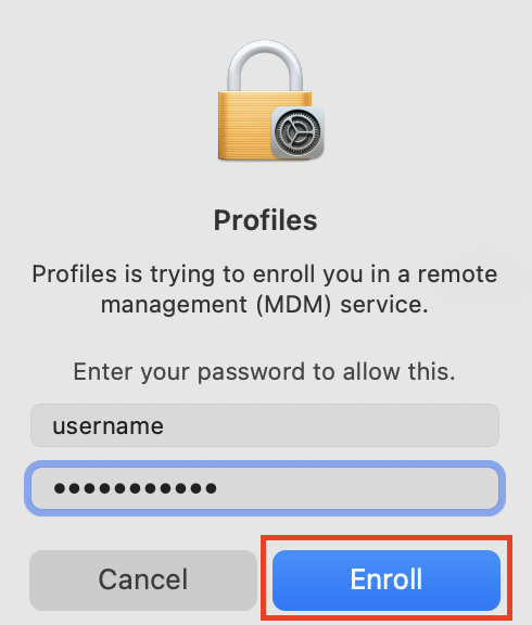 Enter your local Mac password and click Enroll