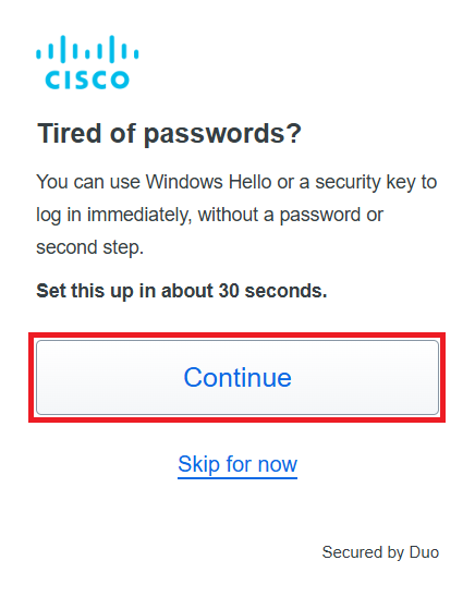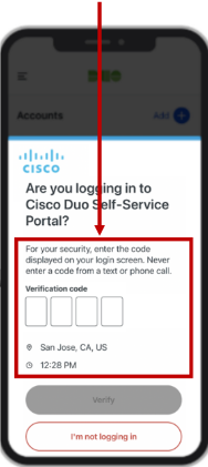 - Only use the code provided within the Duo login prompt from your Cisco device